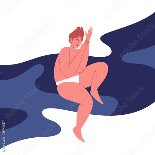 Calm Fat Woman In A Curled Up Pose Wearing Underwear Sleeping Floating In The Abstract Pink Background Calm And Chill Vibe Body Positive Flat Illustration Premium Vector In Adobe Illustrator Ai
